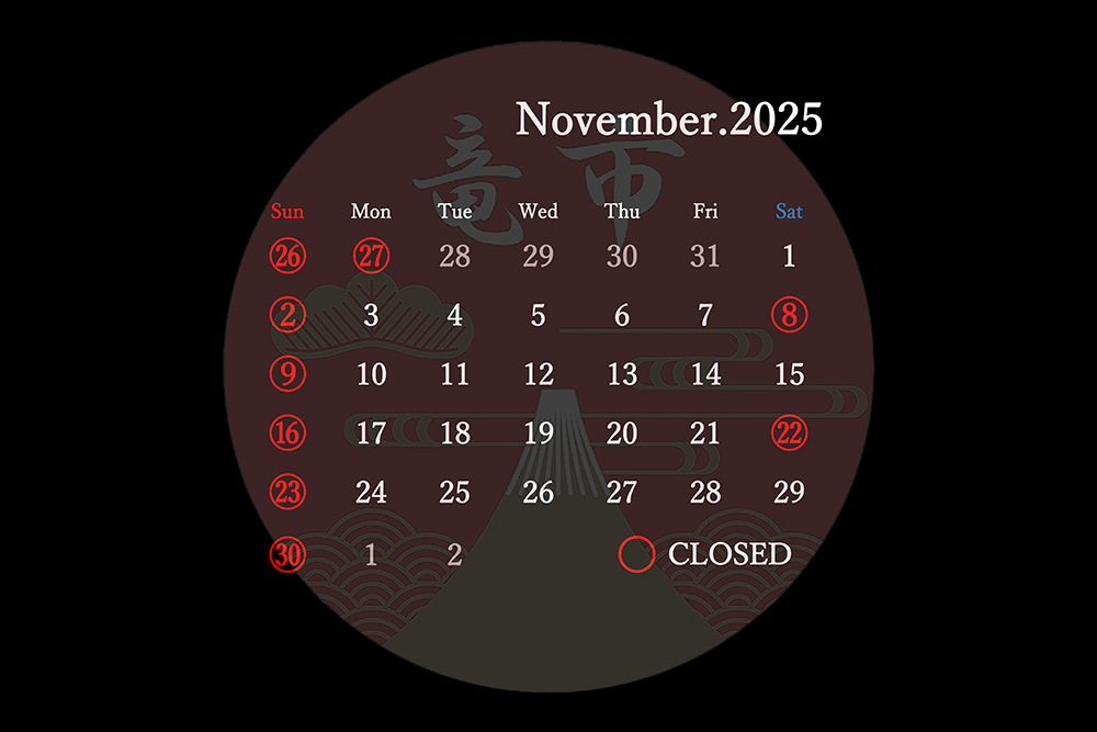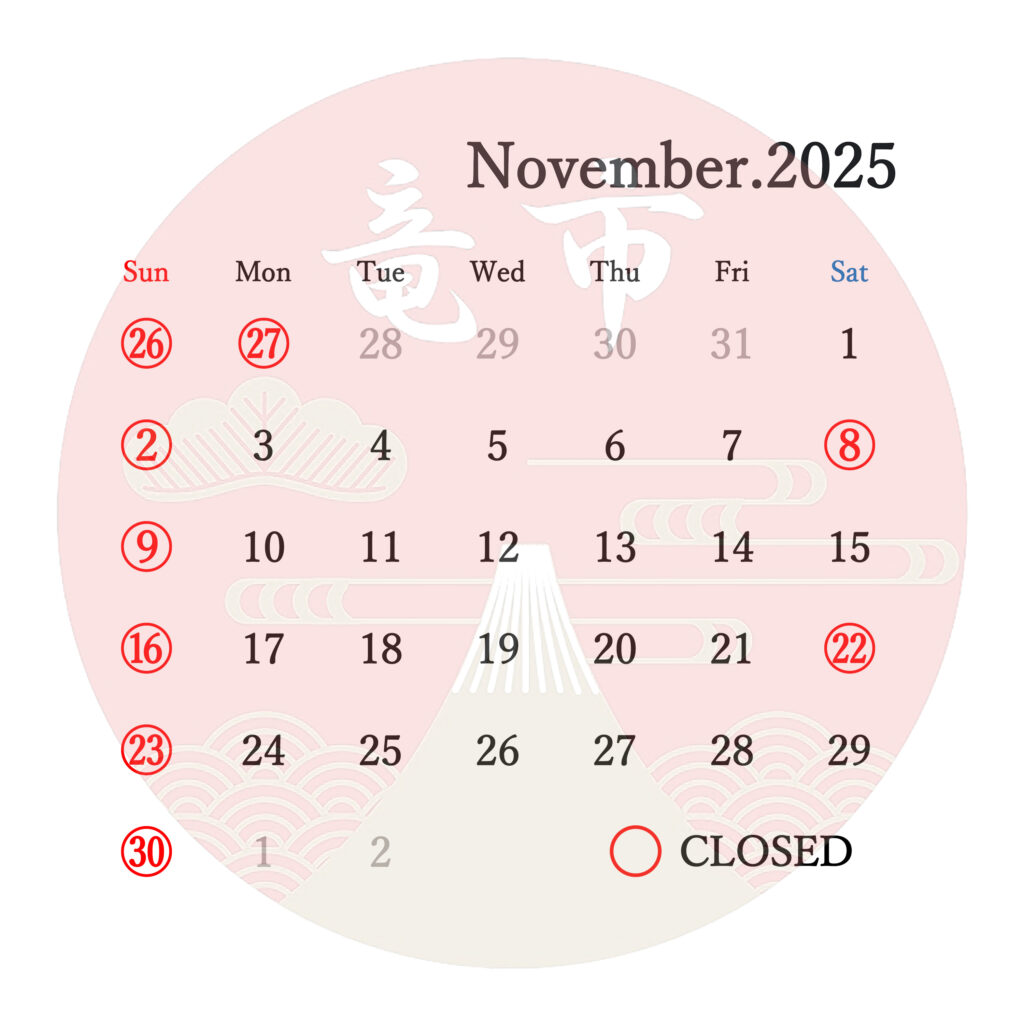 2025年11月は、上記丸印の日付を休業日とさせていただきます。