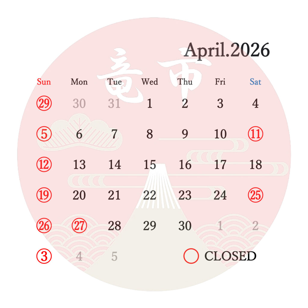 2026年4月は、上記丸印の日付を休業日とさせていただきます。